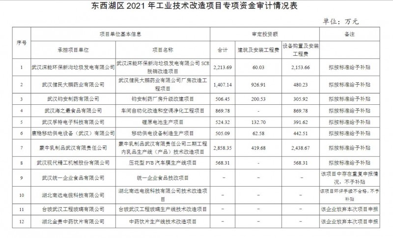 東西湖區(qū)2021年工業(yè)技術(shù)改造專項補貼資金審計情況公示