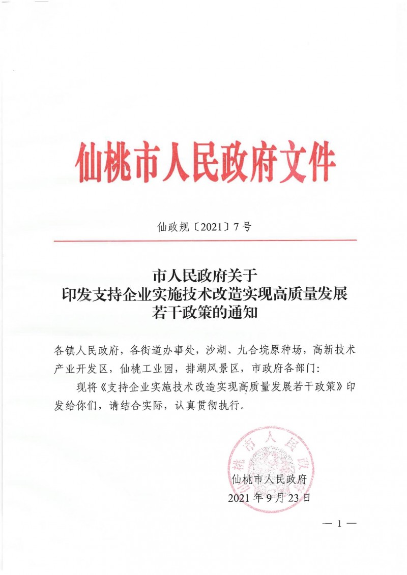關(guān)于印發(fā)支持企業(yè)實施技術(shù)改造實現(xiàn)高質(zhì)量發(fā)展若干政策的通知